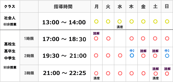 ※ 生徒入退室の都合上、開始終了時間が多少前後することがあります。
