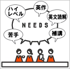 - 例えば英語がどん底の高2生なら、高1の授業に加わって一から基礎を学んでもらったり、ハイレベルな高2生なら、高3に混ざってハイレベルな授業を受けてもらったりと、ニーズに応じて学年をまたいで授業を受けていただいています。のののの〇〇〇〇〇の〇〇〇〇〇〇〇〇〇〇のののます。〇〇〇〇〇〇す。〇〇〇〇〇〇す。〇〇〇〇〇〇す。